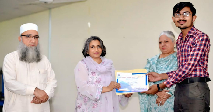 On Wednesday, April 22, Punjab University Library celebrated World Book and Copyright Day by honoring all book lovers with a special ceremony, where students were presented with book awards and valuable books. These awards were given on the basis of maximum use of library services and reading maximum books throughout year. We extend our heartfelt congratulations to Azmat Khan, Student of BS Applied Psychology, Semester 4th (morning), for winning the "Punjab University Library Book Lover Award 2026." Azmat Khan, not only read books but also presented book reviews in Book Bridge Literary Society, Punjab University Readers Society and in Hostel # 15, under hostel ambassadorship. His dedication to reading sets an example for every book enthusiast. We wish that he continues his journey of learning, lighting up minds with the power of words and carrying forward this beautiful tradition of love for books. After all, books are those silent companions that make us feel complete even in solitude.